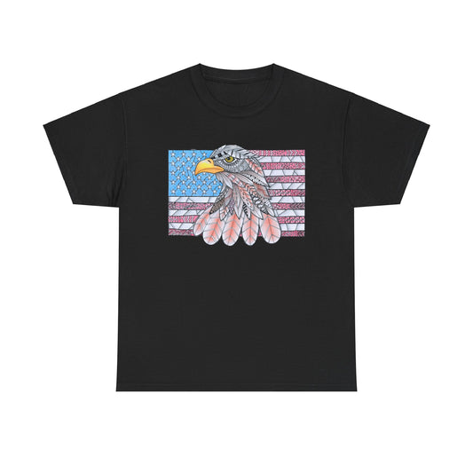 American Flag w/ Majestic Bald Eagle Heavy Cotton Tee